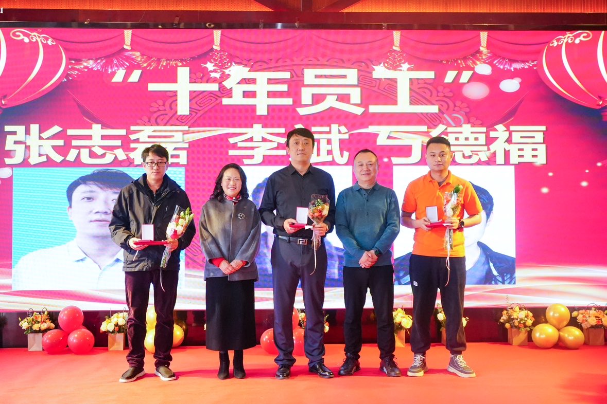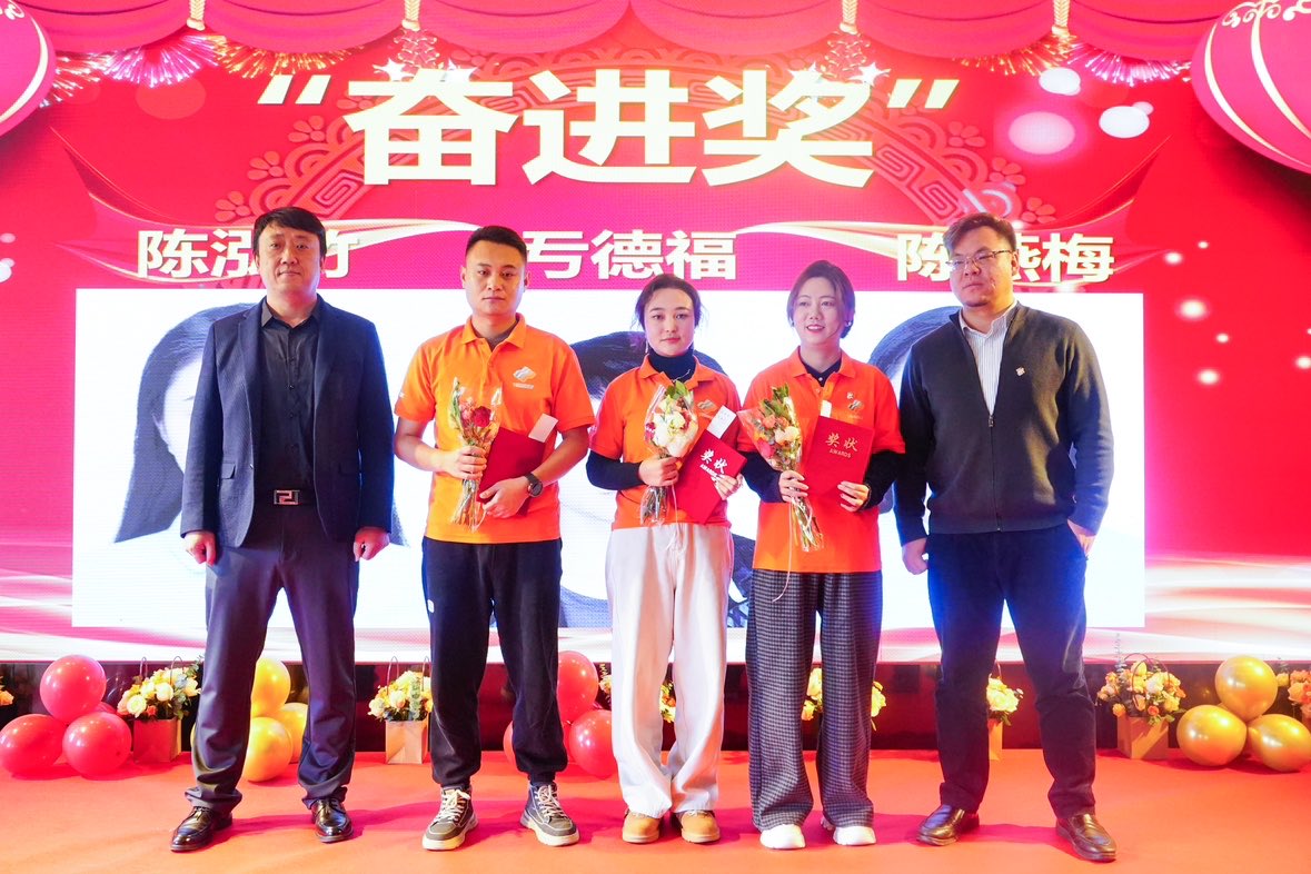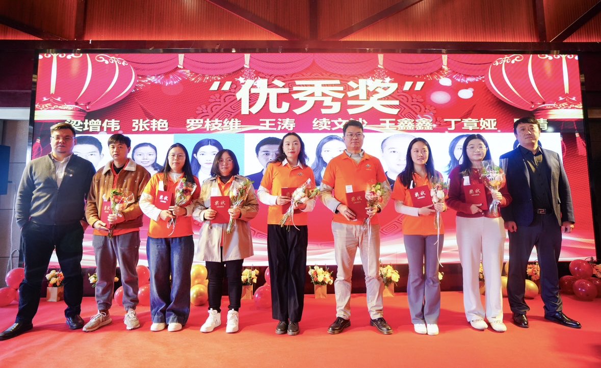 為了表彰在過去一年中表現(xiàn)突出的團(tuán)隊和員工,年會特別設(shè)置了頒獎儀禮。由亢麗毓董事長、廖勁松副董事長和王軍、張志磊、李杰三位副總經(jīng)理分別對團(tuán)隊及個人獎進(jìn)行表彰。這不僅是對優(yōu)秀個人和團(tuán)隊的認(rèn)可,更是對全體員工辛勤付出的鼓勵與激勵。因駐守海外項目無法到場的“突出貢獻(xiàn)”獎獲得者通過線上方式發(fā)表了獲獎感言。